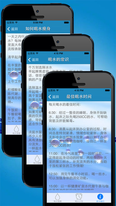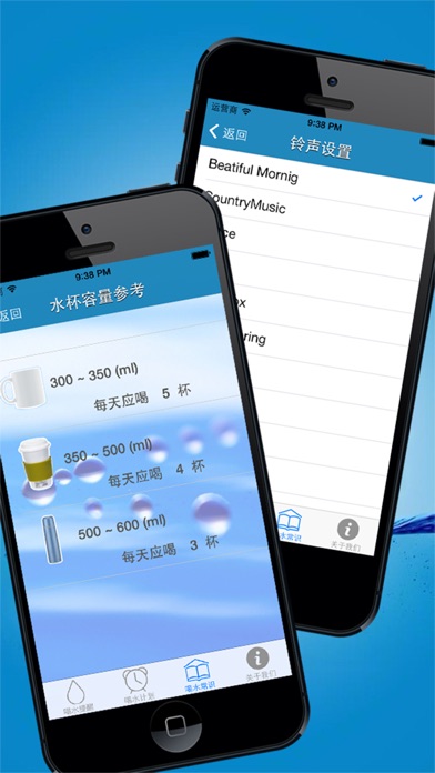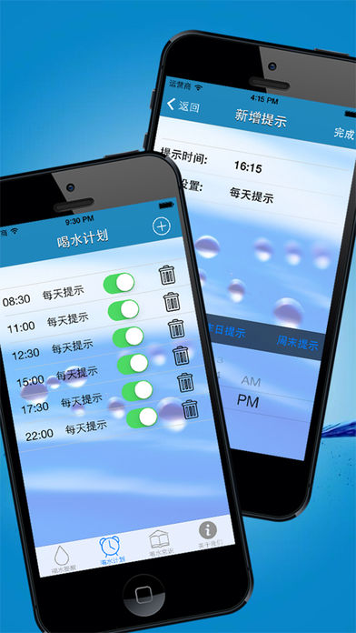 劲爆 1 元限时体验价(仅限中国区)! 你是不是经常因为忙碌的工作而忘记定时喝水? 水是生命之源,人体一切的生命活动都离不开水。对于人体而言,水在身体内不但是“运送”各种营养物质的载体,而且还直接参与人体的新陈代谢,因此,保证充足的摄水量对人体生理功能的正常运转至关重要。 然而忙碌的我们经常因为手头的工作而忘了喝水!科学研究,人体每天至少需要喝8杯水。所以为了您的健康,请务必重视喝水的重要性。 喝水提醒 是一款设计精美,能提醒您及时适量补水的应用。包含了专家推荐的最佳喝水时间表,喝水常识,喝水瘦身(爱美的女性朋友不妨一试)等一系列经典内容介绍。 1.作为首款免费下载使用的喝水提示软件,备受大家好评; 2.可根据个人作息时间设置喝水提醒时间; 3.多达数十种不同的提示铃声,欢乐提醒; 4.大量的喝水常识供用户学习参考; 5.完美适配iPhone5、iPhone高清,iPhone、iPod Touch不同手机;