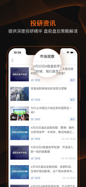 进门财经(股票代码:838764),领先的机构投研服务平台,平台以专业的投研分析为核心,基于首席分析师大量深度研究、上市公司调研、行业专家产业解读,聚合、精炼高质量高价值的研究成果,助力投资者投资决策。截至目前,已与海通、招商、长江、广发等35家券商研究所建立深度战略合作关系,全行业500多位首席分析师在进门财经APP线上路演最新研究成果。 平台内容 分析师:与500多位券商分析师线上互动 投研资讯:提供深度投研精华盘前盘后策略解读 上市公司:业绩发布会,约调研,重大事项说明会等 财经观点:行业专家产业解读、投资大咖线上分享 金融课堂:高品质投研培训,为投资者进阶赋能 产品功能 直播形式:…