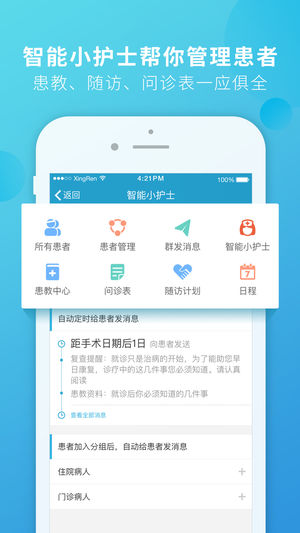 【中国优秀医生的职业伙伴】 436,421 名实名认证医生用户的选择! 全国一线、二线城市的重点医院里,超过 60% 的执业医生都在使用! 杏仁医生是一款为医生服务的手机 APP,获得新患者,随访老患者。 【为中国医生定制的职业站】 UpToDate 全球循证医学知识库——170 个国家,100 万医生正在使用; 上「大众点评」吸粉,做明星医生——千万级大众流量曝光,建立个人品牌; 杏仁 10 亿医责险多方位保障——已为 13,882 位医生投保,线下线下多点执业的安全保障; 刻印您名字的笔记本——烫金真皮笔记本,医生人手必备; 全精装名片——专属定制,给患者,给同行,最有身份的象…