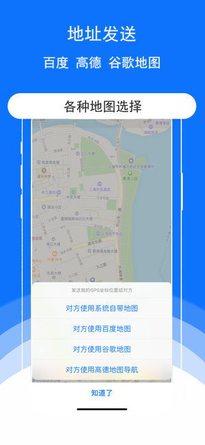 手机定位找人app火热上线,一键发送位置让好友找到我 支持短信,邮件,微信,QQ等发送我的位置给好友。 支持高德地图语音导航和线路导航。 手写地址out啦! ========================================================= + 简单快捷——手机发送地址 打开应用,定位我的地址,选择地图,直接短信,邮件,微博,微信,QQ等发送我的位置给好友,及时找到我。 再也不用担心好友找不到我。告别手写输入地址,一键搞定,轻松享受。 例如:遇到坏人,不方便发送输入地址,可以直接打开应用,一键发送GPS,通知好友救援。或者…