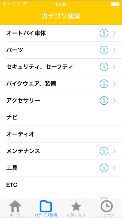 BikePartsNAVIは中古バイク、バイクパーツ、バイク用品専門のオークション検索アプリです。 このアプリの特徴は「Yahoo!オークション」の豊富なデータの中から簡単にオークションに出品されている中古バイクやパーツを探せる所です。 BikePartsNAVIには以下のような便利な機能が備わっています。 ・キーワード検索機能 検索フォームに気になるアイテムのキーワードを入力することでオークションから直感的に商品を検索することが出来ます。 ・カテゴリ検索機能 数あるオークション商品の中からカテゴリ別に絞って検索することが出来ます。 目的にあった商品を検索することが出来るのでとても便利です! ・お気に入り登録機能 一度検索したオークションの一覧や気になるページをもう一度見たいときにお気に入り登録しておけば後からいつでも簡単に見ることが出来ます! ・並び替え機能 価格別、入札数別、終了日時別に並び替えてオークション一覧を表示することができます。 全体的にシンプルな設計になっておりスマートフォンが初めての方でも短時間で馴染めるようなアプリになっています。 このアプリはWebサービス by Yahoo! JAPANを利用しています。