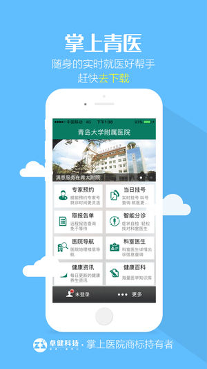 “掌上青医”是青岛大学附属医院以移动互联网、云计算、物联网、大数据等特点“智慧化”信息服务。“掌上青医”旨在医院现有服务基础上,通过预约挂号、取报告单、科室医生、智能分诊、医院导航、健康资讯、健康百科、费用查询等多种简化患者就医流程功能,减少就医等候时间,改善患者就医体验,提高医疗服务质量。 -----主要功能----- 1、预约挂号:掌上预约挂号,短信凭证高效就诊; 2、取报告单:在家也能取报告单,无需往返医院查询、取单; 3、智能导诊:哪里不适点哪里,模拟医生问诊,推荐相关科室,帮您针对性挂号; 4、叫号查询:叫号情况,实时更新,不再错过,轻松掌握。 此外还有医院导航、健康百科等实用功能,…