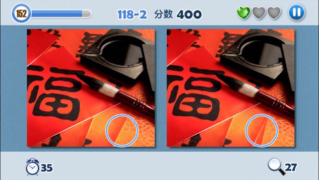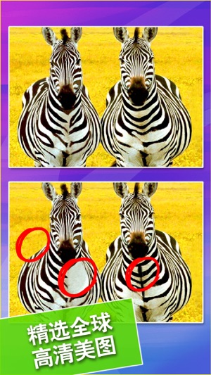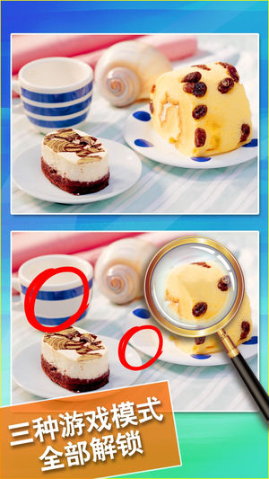上千个大家来找茬免费关卡,包括风景美食影视动漫及各类流行美图,让找茬充满新鲜挑战! 现已解锁所有模式,经典找茬,对战模式,无尽模式,任意玩啦。 最新图库不断更新中,可以直接从后向前玩。 外加精美的背景音乐,首首动听,让玩家沉浸在这个游戏中^o^