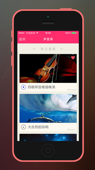 ********************************************************** 在153个国家被苹果推荐! ********************************************************** 正在寻找使人“心情愉快”或者“放松精神”的应用? 正在寻找让你“睡得更香”或者“效率倍增”的应用? 科学家认为,当人处在优美悦耳的音乐环境之中,可以改善神经系统、心血管系统、内分泌系统和消化系统的功能,促使人体分泌一种有利于身体健康的活性物质,可以调节体内血管的流量和神经传导。另一方面,音乐声波的频率和声压会引起心理上的反应。良性的音乐能提高大脑皮层的兴奋性,可以改善人们的情绪,激发人们的感情,振奋人们的精神。同时有助于消除心理、社会因素所造成的紧张、焦虑、忧郁、恐怖等不良心理状态,提高应激能力。 我们的最美系列应用 - 放松旋律篇,把“精神按摩师”装进你的口袋! 每天精选最美旋律!时刻保持好状态好心情! 主要特性: • 每天新增精选的最美噪音,每天都有惊喜 • 不断更新的丰富的声音库,都是人工精选 • 简约舒适的精美界面,让您爱不释手 • 完美高清的图片和声音,让您身临其境 • 强大的混音功能,任意组合你最爱的声音 • 收藏自己最爱的声音,任意调整删除个人收藏列表 • 支持后台播放,方便您同时使用其他app • 支持锁屏播放和计时器,伴您安然入睡 声音库(不断更新中): 记忆中的旋律,优雅曼妙,秘密花园,优美流畅,远古空灵,秘密,悠扬的萨克斯,贝多芬月光奏鸣曲,情深意长,泰绮思冥想曲,卡门序曲,琵琶语,殇,二胡版烟花易冷,屏息,虫师鼓呗,安静的看书,四根琴弦唯独唯美,纤指香凝弦上飞,梅花三弄,美妙的钢琴片,沧海一声笑,委婉抒情,梦想之翼,湛蓝回忆,咏唱,青山下白素贞,葬花吟,仙五-凤鸣曲,森林狂想曲,虫师-眼福眼祸,拜托小姐,枉凝眉,安静的午后,动感旋律,游弋,诡秘...