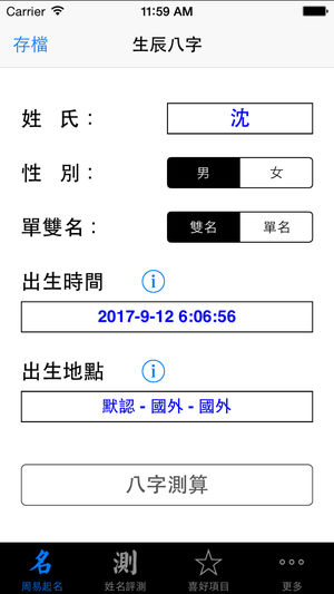 周易起名是基于中国传统周易理论, 综合生辰八字喜用神、三才五格笔画、生肖喜忌、字形、音义等开发的专业起名辅助App。 * 专业八字测算、汉字音律、意义、字形等解释 *支持大陆简体及台湾、香港、澳门等地区的繁体语言 * 采用真太阳时作为推算八字基础,准确判断八字格局 * 汉字笔画及五行属性以《康熙字典》为标准 * 一键轻松生成 * 好名收藏功能。 简单一键加入收藏夹, 可供随时查阅