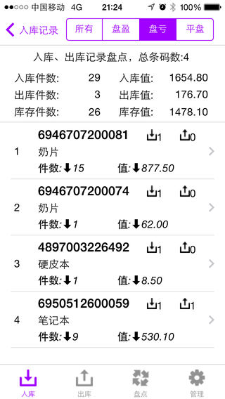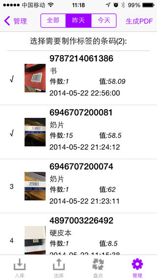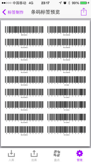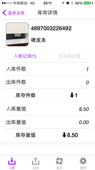 扔掉笨拙的盘点扫描枪和大块头的收银机吧。用手机进行进销存以及出入库管理的时代已经到来!利用微仓管,可以简单轻松的进行入库、出库、盘点的操作以及条码标签制作。 --直接使用摄像头对一维条形码进行扫描识别,可识别常见Code128、Code39、EAN13、EAN8、UPCA、UPCE、ISBN等常见条码类型,在识别条码的同时可以进行条码拍照,以方便进行比对。 --对入库条码进行Code128、Code39、EAN13、EAN8、UPCA等多种类型的条码标签制作,生成PDF文件,并可以导出打印。 --对单一条码进行批量标签制作。 --利用wifi导入需盘点的库存数据,在盘点时进行逐项盘点。 --自定义导出入库、出库以及盘点的操作记录的字段。 --可以对标签和清单数据通过邮件发送到用户邮箱。 --可广泛应用在小型百货商店、服装专卖店、生产企业仓库、固定资产管理等,也是企业ERP仓库管理的得力助手。 有了微仓管,从此仓库管理变得轻松。 注:建议升级前进行数据备份。有任何问题,请联系邮箱:shaokelee@gmail.com.