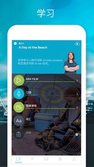 加入 ABA English 两千一百万学生的行列中来吧!我们的英语教学基于自然学习法的原则为:就象在现实生活中学英语一样。观看 ABA 影片,或进行多元化的写作、口语和听力练习来提高理解能力。你会得到许多以英语为母语老师会宝贵建议。 每个人学英语的理由都不同:为了旅行、为了工作,抑或是为了认识世界其他地方的人。你为什么要学英语呢? 你知道,每年英语词典中都会增加四千个左右的单词吗?你知道全球有十亿人正在学习英语?今天就来开始学习英语吧! 你想用一种自然、高效而灵活的方式学习英语吗?来尝试我们7天内免费的在线英语课程吧!我们深信你肯定会喜欢的! * 要访问课程的全部内容,请根据你的需要…