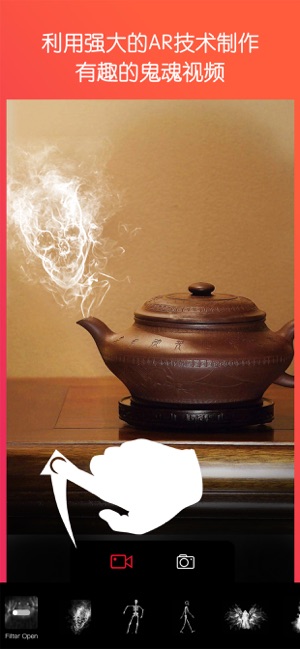 相信大家都看过一些人物虚化或者我们可以称之为“灵魂”的创意摄影,其中的人物或者物品呈现出半透明状态,仿佛不存在一般,整个画面有一种独特的感觉。 本应用就可以拍出这样的视频或者照片,根据软件提示进行操作就可以很简单的拍摄出此类效果的照片,首先让主题在画面中,拍摄一段视频或者照片,然后让主体离开画面,再次拍摄,软件会将视频或者照片进行合成,从而产生主体半透明的效果,还能选择各种滤镜效果。切记拍摄的时候保证手机的稳定哟。 同时,本应用包含了多种的幽灵特效,可拍出各种各样的鬼魂照片,制作您专属的鬼片,加入您所选的恐怖音乐,吓唬你的朋友,是恶作剧的利器。 除了制作“灵魂”题材的电影或照片,本应用还提供了…