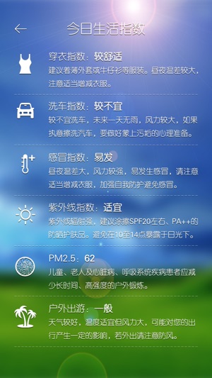 查看全国各地得天气预报,生活指数,并且可以分享天气预报通过短信方式发送给好友,或者其他人。