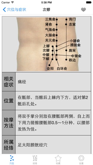 在我们的身体上有很多的穴位,这些穴位都有着很神奇的作用,每个穴位都有不同的功效。 穴位按摩是中医药历史上的一朵奇葩,简单有效且无任何副作用。 忙碌的人世中,我们每个人都处在亚健康状态,希望您关注自己的健康! 本APP图文并茂的为您解读人体经络穴位、对应症状以及简单的按摩手法等知识。 您可以用本APP搜索穴位或者症状,用APP给出的方法来缓解治疗。