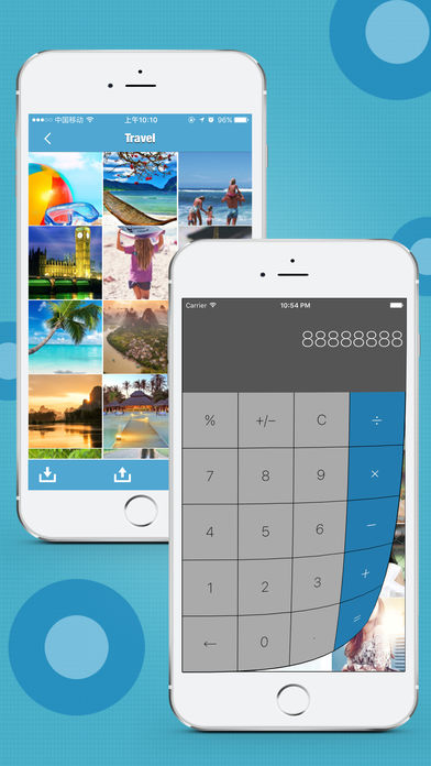 私密计算器可以把你不想被人看到的图片&视频隐藏在计算器背后,在别人看起来只是一个普通的计算器。所以你再不用担心被人发现不该被看到的图片&视频。 应用只有在你输入预设的字符后,才能变成一款隐私保护软件。安全隐蔽,方便快捷。 主要特性: 1) 方便快捷: 私密相册提供了多种导入导入方式,方便您将“特殊”照片或视频导入其中: 1.1 支持从手机相册导入照片或视频 1.2 支持从 iTunes 进行导入; 1.3 支持局域网WiFi传输; 1.4 支持应用内相机保存; 2) 安全有效: 2.1 密码访问机制 - 输入特殊的字符才能访问应用内数据; 2.2 伪密码 - 显示一些事先设置好的无关紧要的内容; 2.3 文件夹密码访问- 多重保护机制; 2.4 文件夹隐藏 - 将密码文件夹隐藏起来; 3) 超乎您想象的特色功能: 3.1 您完全可以把它作为一款普通的计算器软件使用; 3.2. 好的相片视频想跟朋友分享?邮件发送文件功能轻松帮您搞定; 3.3 备份图片视频文件,防止重要文件丢失.您可以将相册导出到电脑或手机相册; 3.4 根据文件夹日期,尺寸,名字排序; 3.5 相册文件太多?快速搜索功能方面您快速找到您要的文件; 3.6 支持多种文件格式 图片: png,jpg,jpeg,gif 视频: mov,mp4,mpv,3gp,avi,rmvb,wmv,mkv; 还在等什么,这样一款优秀的软件,还不足以打动你嘛?