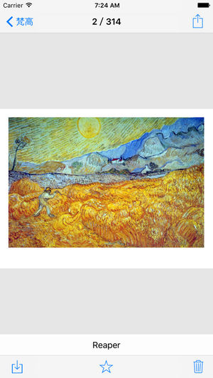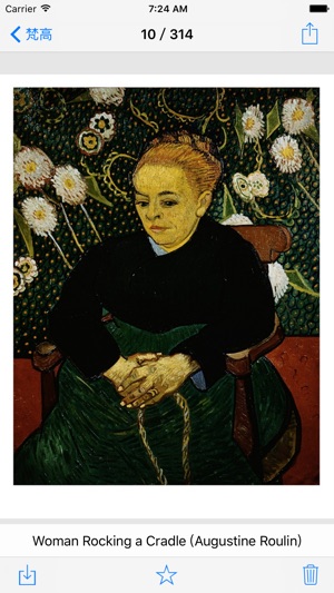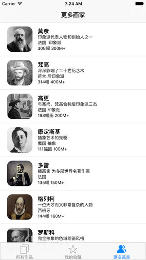 应用内无广告 梵高(荷兰语:Vincent Willem van Gogh,1853年3月30日-1890年7月29日),荷兰后印象派画家。他是表现主义的先驱,并深深影响了二十世纪艺术,尤其是野兽派与德国表现主义。梵高的作品,如《星夜》、《向日葵》和《有乌鸦的麦田》等,现已跻身于全球最具名、广为人知的艺术作品的行列。他在2004年票选最伟大的荷兰人当中,排名第十,次于第九伟大的17世纪画家伦勃朗。 ****************** 1, 314幅作品 ****************** 2, 每幅都是高清,每幅2000像素,单幅文件约1M ****************** 3…