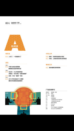 《中欧商业评论》是一本由中欧国际工商学院主办的高端管理杂志,以国际化的视野关注中国的商业生态和企业群落,秉承中欧“全球视野,聚焦中国”的理念,致力于成为高级管理人士的“决策必读物”,提升中国企业家的决策能力。2008年创刊以来,《中欧商业评论》已在企业界和学界赢得广泛影响力。 《中欧商业评论》是一座“移动”的商学院,学院所独有的优势教授资源(如吴敬琏、许小年、丁远等)和研究资源(如中欧陆家嘴国际金融研究院、案例研究中心、民营企业研究中心等),都将持续地通过杂志为读者输送权威的观点与研究成果。 关于本杂志订阅注意事项: 1、中欧商业评论杂志为月刊,一月一期 2、订阅杂志,您可以选择 .…