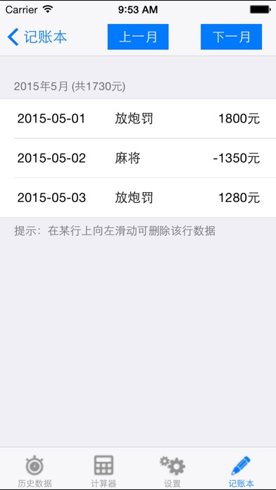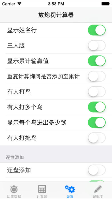 放炮罚,又称为百胡,红胡,告胡子,煨胡子,跑胡子。是湖南娄底及其周边地区流行的一项字牌类游戏,据说该种字牌起源于湖南省双峰县,所以又有双峰跑胡子的说法。该游戏需要在某玩家的胡子数超过一百胡时进行一次计算。该软件是一款辅助计算的软件。计算快捷,且计算结果准确无误。 您可以使用本软件来计算结果,也可以直接使用本软件来记录胡子。使用本软件记录胡子的话,您不再需要笔记来进行记录,软件将自动把结果计算出来,并将每一局各玩家的最终胡子数,结果数,累计输赢值记录到历史数据中。 本软件支持如下功能: 1,有人打鸟,有人打多个鸟,有人打拖鸟,在打多个鸟的时候,可以设置软件显示每个鸟进出多少钱。 2,软件自动记录累计输赢值。(当重复计算时,软件将不会再次将该结果值加入到累计值中) 3,可设置“操作时播放语音”,让您的输入更加准确无误。并且软件在计算后,将自动播报各玩家的计算结果。 4,逐盘添加。使用该功能后,您将不再需要使用笔纸来记录。 5,屏幕常亮。使用该功能后,手机屏幕将一直处于常亮状态。 6,支持三人版。四个人玩的时候可以使用本软件,三个人玩时也同样可以使用本软件。 7,记账本功能,使用该功能后,您可以清楚知道自己每年,每月都输赢了多少钱。