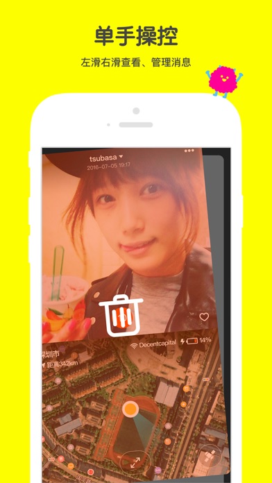 一个没有聊天室、无需社交的适时通信应用,为万物合一而生! ● 不用打字,点、按头像发指令或对讲 ● 不用社交,一键连接万物 ● 消息中可添加有趣的动态贴纸、涂鸦、手语、文案等 ● 限时阅读保护你的隐私,一旦截屏就会通知你 ● 只一键,家人朋友收到海量信息;比打字聊天更快、更高效 ● 用母语直接搭讪有趣的外国人 全球数百万年轻人率先体验,2016年连续数周社交收费榜第一名; 团队获得了腾讯联合创始人曾李青、架桥资本的联合天使投资; 2014年度360蒲公英计划第一批成员、《创业邦》创新大赛第二名; 2015-2016年入选微软云孵化平台,微软全球副总裁Markday、CTO古普达访问了团队。 期待各种合作,您可访问www.tgioe.com或安装叽叽后联系我们。