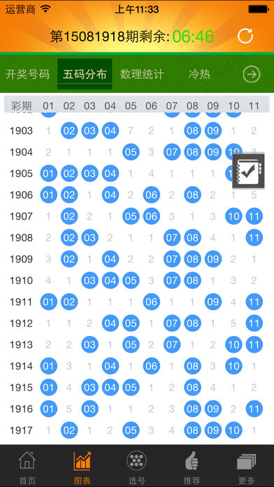 浙江11选5彩票专业工具,各种图表助您选出最佳号码。通过开奖号码图表,发现出号规律,是您中奖的好帮手。 - 囊括开奖走势、遗漏、冷热、奇偶、码型、号码分布等图表。 - 专业投注号码推荐,助你跟踪决策。 - 彩票专家教你选号投注的秘密技巧。 - 还有大乐透,排列三,排列五,七星彩开奖查询。 - 只需极少流量,没有网络也可查看历史图表。