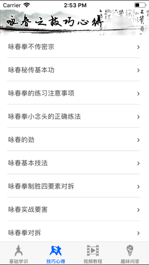 目前APP store中最权威、实用的咏春拳教程,咏春拳为南拳中实用性、技击性较强的拳法之一,在我国香港、广东、福建等地流传广泛,咏春拳给人最大的印象恐怕就是“招法快如闪电”及“手法之防护风雨而不透”,因其功法简洁与实用,同时也被称为“街头武艺”,前辈们进而设计了一套由浅入深的训练系统,由单纯的静态气功及手部动作开始,直至意念反应全身总体运动为止。除了真正可以用于攻防之用,及至其训练“黐手”阶段,由于是练习自然反应,不要硬套次序招式,更加使人感到兴趣。所以凶猛的咏春拳术训练可以上擂台比赛,而一般训练亦可视作长期强身运动。为使初习者明了筑基功夫,少走弯路,本APP结合多家宗师传授心得,以求最短时…