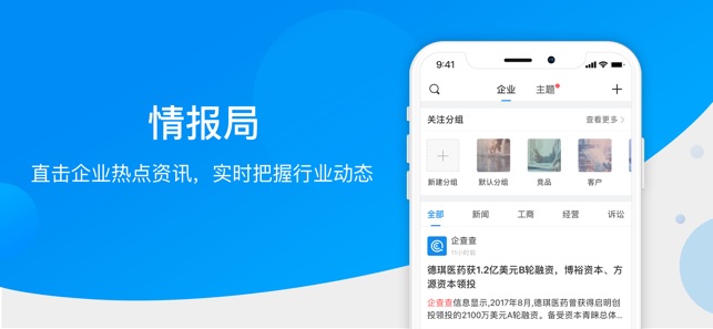 企查查专注于提供全国企业信用信息查询以及专业的企业关系挖掘,已经成为全国各界商务精英必备的企业征信查询神器,为各界人士提供更为权威、丰富、全面、客观的企业信息大数据。 查企业,就上企查查,企查查目前覆盖全国超1亿5000万+企业征信信息,企查查让查公司变得更简单快捷。 查企业、查老板、查关系,查征信、查信用、找客户、谈合作、做调研,就上企查查! 目标人物关系网任意查,想知道的公司信息随便找,百余种数据维度可供使用。 关系梳理透明化,专业信用报告呈现等高阶功能,明星和企业老板们都在用,适用于所有人群。 企查查实时洞察商业讯息,成功人士都在用的商业安全工具。 及时了解企业经营状况、洞察企业经营…