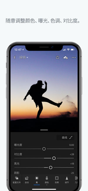 随时随地制作精美照片。 适用于移动设备的 Adobe Photoshop Lightroom CC 是一款免费应用程序,功能强大、使用简便,可拍摄、编辑和分享照片。而且,您可以升级到高级功能,对包括移动设备、台式机和 Web 在内的所有设备执行精确控制,实现无缝访问。 拍摄 • 采用 Lightroom CC 专业拍摄模式,绝不错过任何精彩瞬间,充分利用您的手机摄像头 • 利用 DNG Raw 格式拍摄,实现更富创意的控制 • 使用高动态范围 (HDR) 模式自动扩展曝光范围,可以拍摄从最亮到最暗的色调,完美再现您看到的景物 • 通过五种特制预设,可以在拍摄时查看效果以及进行后期效果微调…
