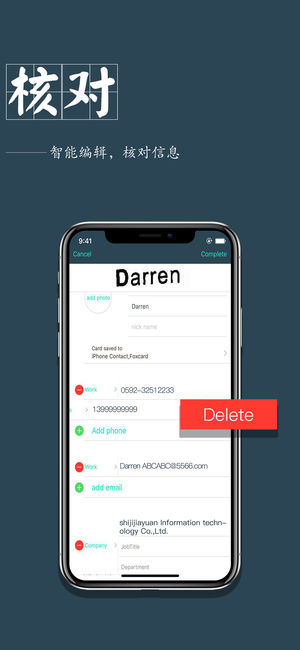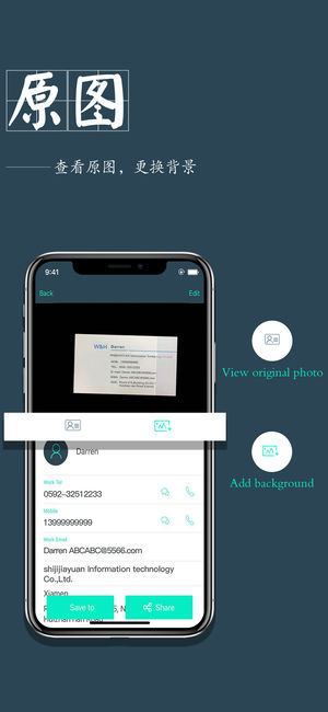 名片扫描王(FoxCard)是最专业的名片识别软件,拥有杰出的识别技术和最快的识别速度,可快速、精准识别多种语言名片,自动存入通讯录。 * “名片扫描王最好的OCR名片识别软件”—连线杂志 * “瞬间保存销售线索,销售人员必备软件”—华尔街日报 * “一堆名片一下子就全进了手机,用起来就是这么简单”—CNC 它还拥有不同于其他同类软件的特有的功能: 瞬间识别名片,迅速保存至手机通讯录; 为名片加头像、图文、备注; 完全本地识别不需要连接网络,保证数据绝对安全性。 识别语言:简体中文,繁体中文,英语,日语。 [我们的建议] 为了达到最好的效果,请确保您所拍摄的图片 ---- 越清晰越好…