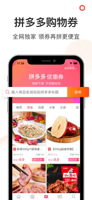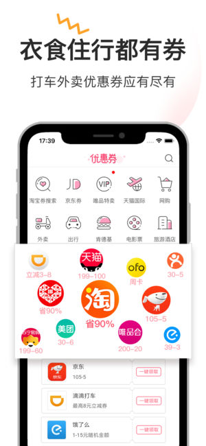 券妈妈优惠券——5千万人都在用的省钱app。免费提供各类优惠券,是优惠券行业的领头羊,打车外卖、衣食住行等各类优惠应有尽有。券妈妈优惠券还是一款优秀的购物比价app,购物前先上券妈妈领券,可省钱多至90%。 【搜淘宝券】券妈妈优惠券有各类隐藏的淘宝优惠券和天猫优惠券,下单前搜索淘宝券或天猫券,最高可省钱90% 【拼多多券】全网独家拼多多购物优惠券,拼购之前先领优惠券,用优惠券拼着买省钱之外更便宜,赶紧来一起 淘券吧! 【红包金币】签到红包领不停,新人更有最高8.8元大红包。券妈妈还是一款兼职赚钱app,赚钱中心功能,让大家可以通过做任务赚取金币兑换现金,做兼职赚钱,省钱的同时还能轻松赚钱…