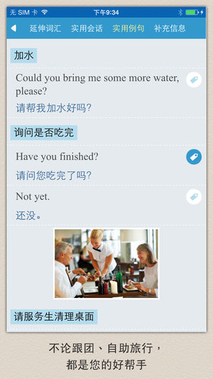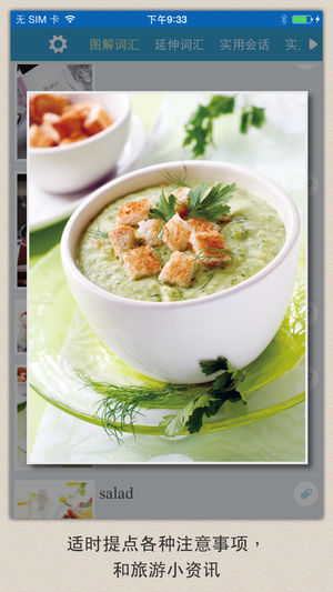 目不暇给的彩图,搭配实用单词与会话,让你还没出国就先认得各种异域事物「长相」,不用再慌忙翻阅旅游英文书!「百闻不如一见」,这句话不是没有道理的。本应用创新采用大量实景照片来介绍词汇和会话,以视觉辅助记忆,不仅学来轻松,印象也特别深刻。 内容涵盖机场、交通、住宿、购物、娱乐等重要主题,依一般旅游行程排列,贴近实际使用习惯,并适时提点各种注意事项,让您玩得安心。不论跟团、自助旅行,本应用都是您不可或缺的好帮手。本应用超过 100M,须使用 wi-fi 才能下载。 应用特色: 外籍教师真人发音 全部单词和句子均搭配纯正口音的真人发音。发音速度可调。 丰富的实景照片 直接按图片,不用开口,…