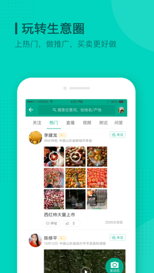 一亩田专注做中国农产品电商信息交易平台,为全国8亿农产品从业者免费提供最全农业品类的电商平台服务,帮助买家找到好货源,帮助卖家找到好买主,并保障农产品交易过程的快捷、安全与高效。在一亩田你能找到全国各个产地和批发市场农产品行情信息,免费在线联系生意伙伴,快速拓展你的生意圈!想做好农产品生意,一亩田可以帮到你! 【主要功能】 1、农产品供应商、采购商身份切换功能:解决批发商老板、代办(经纪人)即是买家又是卖家的身份切换问题。 2、精确匹配功能:解决用户需要输入查询条件繁琐搜索的问题,新功能将根据用户的需求、地域、价格等条件进行精准匹配推荐。 3、商户管理功能:解决用户发布农产品影响力问题,新功能…