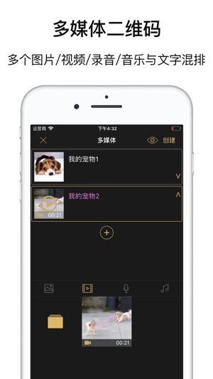 二维码工房,是一种个性化的交流方式,重新定义二维码生成及扫描。独家支持图片/视频/语音/音乐生成二维码,还能把二维码变成圆形的微信小程序码。活码功能则令二维码图案不变,内容可随时修改。 -好评如潮- - 操作简单,图片文字都可以生成二维码,用来制作惊喜棒棒哒! - 表白神器,做出来很漂亮,独一无二,表示已表白成功,简直高能! - 二维码的年代,这种商业神器不能没有,有了它我的网上商城生意越来越好了! 【功能亮点】 ● 个性化精美二维码生成神器 - 一键制作专属彩色二维码,支持文本、网址、图片、视频、语音、音乐、名片、WIFI、位置、小程序、比特币等格式,多种精美主题和边框任君选择。 - 支持…