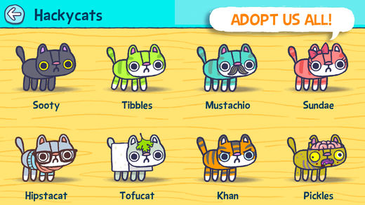 Save really cute cats from exploding. By kicking them. Truly one of the most fun and addictive time wasters on the mobile market to date. -GameZebo Hackycat contains hours upon hours of good time, just waiting for you to kick it. Meow. -Kotaku It's a rad game, which is something I'm actually qualified to say, I think. -Touch Arcade Tap cats to bounce them in the air! If any cat hits the ground, it’s game over. Choose your athlete and join the official Hackycat competition! Collect cheezburgers to unlock new cats, athletes and locations! Launch cats into space with the almighty Superkick. Use powerups and combos to achieve epic high scores! NOTE: All the cats in this game are trained professionals. Do not try this at home with your domestic grade pets. ⭑ Simple Controls! Tap anywhere to kick, knee or headbutt! ⭑ Adopt them all! Over two dozen hackycats to collect and kick, including Hipstacat and Sir Pussington. ⭑ Pro skills! Use powerups, combos and superkicks to achieve epic high scores! Dozens of mini-goals to complete! Level up your athlete! ⭑ Fully equipped Universal app; Game Center achievements and leaderboards; retina and iPhone 5 ready ⭑ Seriously All the cool kids are playing this, you should too Email: ken@hackycat.com Trailer: http://www.hackycat.com Facebook: hackycat Twitter: @hackycatapp