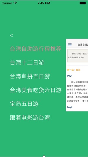 《爱台湾》最好宝岛旅游攻略! 台湾很小,台湾也很大,从城市到乡村,高山到大海,峡谷到湖潭, 每个地方都散发着不同的风情,值得细细品味。享受台北,品味台南,领 略高雄,漫步垦丁。一杯咖啡一本书,在多雨多雾多梦想的空中之城九 份,慵懒一个悠闲的下午;饶富趣味的巷弄美食和地道小吃挑逗着味蕾, 身为一个吃货在这里是如此的幸福;在诚品,发呆惬意两相宜,和书籍一 起贩售的,还有生活方式;故宫博物院,收藏着五千年的中国历史,看不 尽的艺术国宝;重峦迭峰、变化莫测的日月潭、引人入胜呈现森林之绝美 的阿里山、一不小心就邂逅浪漫的爱河、晚风轻拂的澎湖湾,白浪逐沙 滩......这不是风光片里的台湾,而是你眼前…