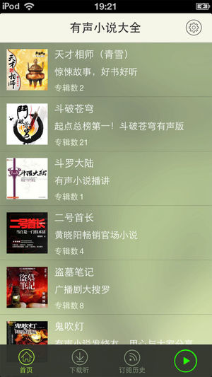 - 畅销小说精选排行榜,海量精品任你选。起点、纵横、腾讯、新浪等各大读书网站的热门小说你都能听到! - 内容持续更新。断点续听,自动记忆上次播放的位置! - 全新用户界面,支持断点续听、在线听、下载听,WIFI环境下一键下载全辑,致力于达到最佳用户体验! - 贴心功能“叫我起床,伴我入睡”,让你轻松入睡,准时醒来! 《有声小说大全》囊括了各大热门图书网站最新最全的最热排行榜有声完本小说,都市、言情、官场、玄幻、盗墓、穿越,不论你是在开车、吃饭、散步、健身、排队,各种style想听就听! --- 作品目录概览 --- 《斗破苍穹》:起点中文网白金作者“天蚕土豆”的玄幻网络小说。在起点…