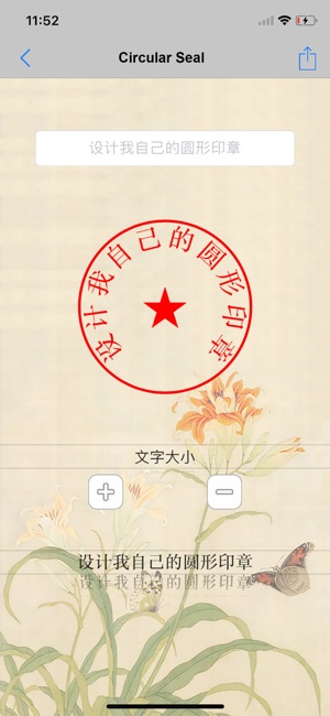 给自己设计印章。 主要功能: 1. 模板印章。 输入自己的名字,选择自己喜欢的印章模板和字体,可生成自己的印章。 生成的印章可以保存,也可以分享给好友。 2. 圆形印章 自定义圆形印章。 3. 个性印章 按照需要直接在内置模板或者用户自有印章模板上添加任意文字,生成印章。用户可以自由选择字体和印章的颜色。 4.自定义设计功能。 在设计页面中加入文字,印章或者签名。 很有趣的一个功能,还在完善中,欢迎尝试和各种意见/建议。 (这个功能本来也是一位用户提出的,在此表示感谢) 5. 印章做旧。 6. 镂空印章 7. 图片转化成印章的功能。二维码,头像,景物,标志等等,都能制作成印章。印章颜色也可以…