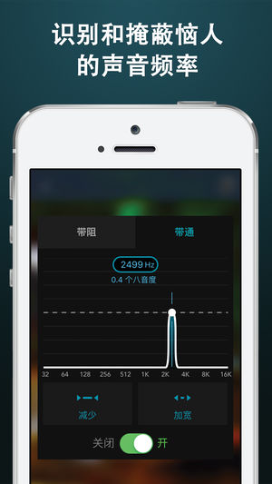 您是否患有耳鸣或“耳内鸣响”?耳鸣HQ帮助了解和缓解您的耳鸣症状。 最新研究表明,通过聆听经滤波以除去您的特定耳鸣频率的声音、可以治疗耳鸣症状。* 耳鸣HQ提供超过500种高品质的自然声音和先进的滤波器、帮助您识别并掩蔽耳鸣频率。 借助众多的自然声音、精密滤波器和数以百万计的混音组合,您有更多的选择以缓解您的症状。 只需在任何声音或混合声音应用带通滤波器,即可将频率限制在一个紧缩的范围内。将该滤波器在频率范围内来回移动、直到其与您耳中的耳鸣频率非常匹配为止。在任何声音或混合声音的频率上应用带阻滤波器、进行耳鸣掩蔽。 您可设置从 0.1 到 4.0 八度的大范围滤波宽度、低至 1 赫兹…