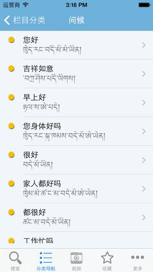 离线浏览,不用联网也可以浏览,速度快,无广告,所有资源在安装时都已安装在本地,使用时无需再连接网络. 提供1000多个最基本藏语句子的汉文和藏文对照的有声例句,以及藏语2000句的学习视频,涵盖了在藏区旅行及日常生活方方面面的各种对话场景。让您最快速的用藏语与藏族同胞交流。