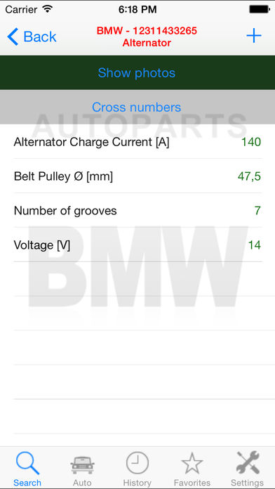 Apps BMW - an indispensable offline catalog , selection and viewing of auto parts in the iPhone or iPad! Attached are all popular auto manufacturers , whose products can be viewed. Available selection of spare parts : • Original • Not original ( analogs or so-called substitutes ) Currently implemented : • ability to store data on their cars • keeping notes about interesting replacement parts • the ability to view the history of viewed parts • conclusion of original spare parts for the requested article • the ability to view analogs ( other brands ) to the OE • View photos of requested parts • View details of the characteristics of Supported languages: • Russian • English • French • Italian • German • Turkish • Polish