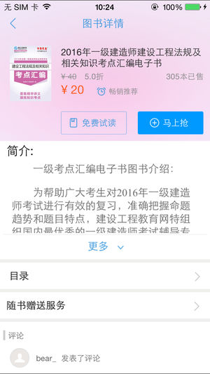 还在看言情小说? 还在看玄幻小说? 还在看都市小说? 再看真的就被别人落下了~ 《梦想成真-建筑考试电子书》是由唱着跳着坐着躺着跪着都能过的建设工程教育网(正保远程教育(NYSE:DL)旗下品牌网站)冠名。主要覆盖建筑培训领域的全部主要课程,包括一级建造师、二级建造师、造价工程师、监理工程师、咨询工程师、造价员、安全工程师等课程,凝聚了网校辅导专家多年教学研究成果,内容以新教材和大纲为蓝本,以考试重点、难点为主线,精心编写而成!“梦想成真”电子书与纸质书内容完全一致,可以下载到手机、平板电脑中随时随地学习,小巧、便携,方便您随时随地进行建筑职称的学习。 【阅读体验,媲美纸书】 亮度调节、夜间模…