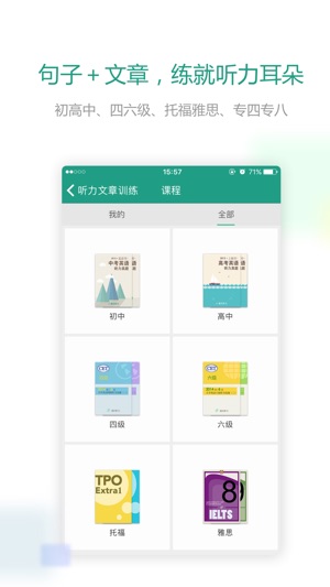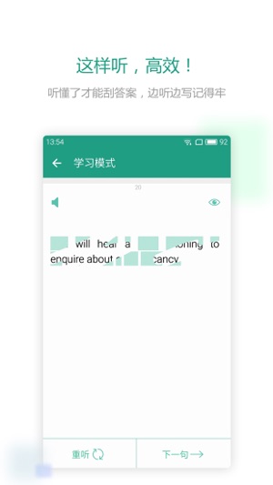 扇贝听力,是一个既有效果并且不累居然还有点好玩的听力训练APP。 【新闻听力】 结合新鲜的时事热点进行听力练习,让你在学英语的过程中不断“与时俱进”。 【逐句训练】 每一篇文章,我们都会拆成一句句,让你听懂为止;实在听不出,我有刮刮卡。 【查缺补漏】 如果担心自己没听懂,我们还有测试环节查缺补漏,让你牢牢掌握每一个关键词。 【真题训练】 四六级、托福、雅思,我们精选了历年真题对你进行强化训练,即使只有一分钟也可以快速开始练习。 【单词拼写】 智能填空,帮你精选重难点单词,写不出来我们还有提示帮你忙。 【分数反馈】 你在每篇文章的得分、重听次数,都会被我们记录下来,日积月累,体现你…
