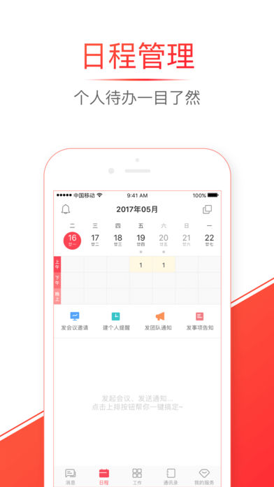 全新“移动彩云”是一款集IM、优办事项、日程管理、企业通讯录、企业网盘等功能于一身的办公协作APP,为企业搭建了工作沟通和管理的统一平台。