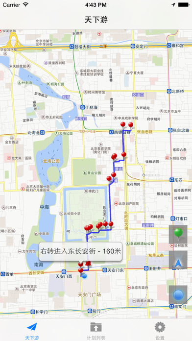 天下游是最准确的模拟交通路线,路线和道路提醒的程序,让您更好的控制您的出行,选择最快的路线,决定最佳出发时机,提前通知您出发时间,并和家人分享。 主要特点: 交通出行:个性化您的出行信息,并可在屏幕上进行导航。 最快线路:根据当前交通状况选择最适合您的出行路线。 个性化提醒:获得您的出行线路和时间提醒。 模拟位置:地图上点击任意位置,模拟出要到达的地点。