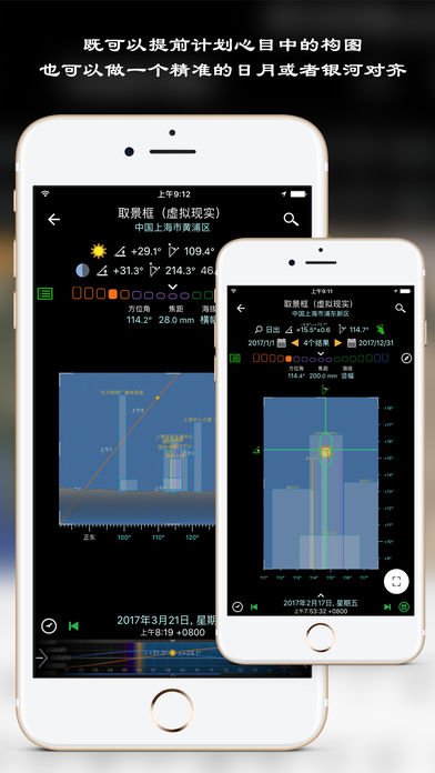 也许您正在寻找一个这样的应用,可以帮助您计划风光摄影各种细节。不用再找了,这个应用就是,它就是PlanIt!。不管您喜欢风光摄影的哪个方面,旅行,城市,自然,夜景,星空,银河,星轨,延时,这个应用都可以帮助到您。 著名美国摄影师安塞尔•亚当斯在他的第一本书《Taos Pueblo》强调了“可视化”的概念。他提出“预可视化”,也就是说摄影师应该在按下快门之前就想象出最后出来的照片会使怎样。当然,很多伟大的照片是即兴拍摄出来的,但是对于风光摄影师来说,如果可以提前预见到场景的样子会很大程度上避免因为没有准备好而错失良机,也会大大增加出好片的机会。 英文视频教学: https://www.youtube.com/watch?v=bna8_Mj8Bso&list=PLTmlTTxPbBbeu8Yx4paLUytV8z60SSL_w 中文视频教学: https://www.youtube.com/watch?v=70_M2tDmyec&list=PLTmlTTxPbBbc99ojiYHmt_HiLTqXODpk3 或者 http://list.youku.com/albumlist/show/id_49707951.html?sf=10101 现在科技发达,摄影师可以使用很多不同的工具实现场景的预可视化。当然,手机应用就是很多这样的工具之一,而且越来越流行。我们这个《PlanIt!摄影计划神器》(简称Planlt或者planit) 就是这样的一个全功能的应用。它巧妙地利用地图结合各种摄影工具和日月银河星历功能,来实现场景预可视化。 在这个看似简单的应用里面,我们加了很多的功能。比如说任何地点的GPS坐标、海拔高度、两点距离、海拔高度差、以及从某一点是否可以看到某个景点。这些信息不单对摄影师,可能对很多热爱旅游的人来说,都是重要的。而对摄影师,我们还专门提供了焦距(水平方向和垂直方向),景深、超焦距和全景工具。不仅如此,我们还加入了星历表的功能。这样您就可以查到任何一天任何地点的日出日落时间、月出月落时间、曙暮光开始结束时间、黄金时段、蓝色时段。甚至任何时刻的太阳和月亮的位置你都可以查到。还有星星、星座、银河、星云的位置。另外还有星轨计算器和延时摄影计算器功能,曝光自动计算,ND滤镜计算器。可以说是风光摄影需要的功能,应有尽有。和其它类似应用不同的是我们这个应用把上面提到的所有功能都在地图上或者取景框方式下直观地显示出来,各个功能之间还可以结合使用。