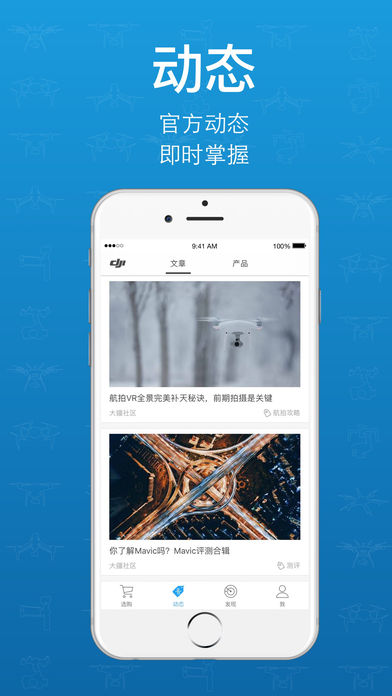大疆商城-DJI Store,手机下单,快人一步,获得专享优惠,查找航拍点,了解热门的无人机资讯和推荐。 优惠活动随时参与 - 第一时间获得活动消息,专享移动端购机优惠。 新品动态即时购买 - 一站购物,查找门店,电池预约,以旧换新。 探索附近航拍地点 - 发现和分享航拍点,上帝摄影视角,就在身旁。 浏览热门的航拍资讯 - 航拍佳作,摄影教程,新品评测,精彩社区,新鲜玩法,应有尽有。 大疆创新(www.dji.com),全球知名无人机飞行器研发和生产商,占据全球超过半数的市场份额,客户遍布100多个国家,重新定义“中国制造”的魅力内涵。 基于出色的技术,大疆成为全球科技领域前沿代表企业。 联系我们请访问:www.dji.com/contact