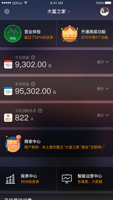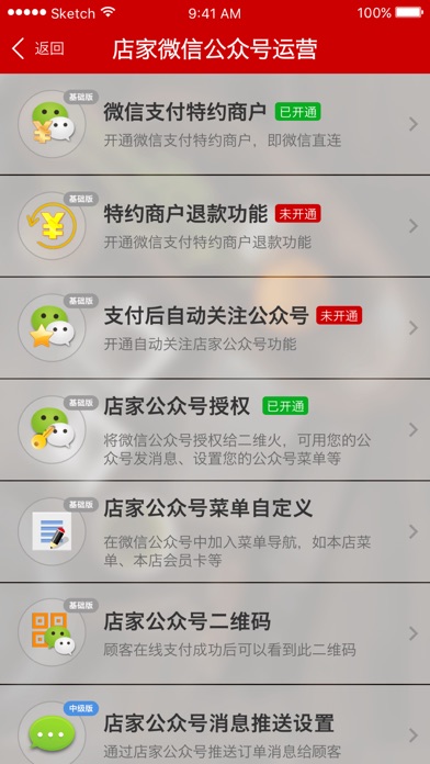 功能介绍:无论在哪里,随时可以查阅餐厅运营数据,管理商品,设置桌位,发起针对会员的各种营销活动……让管理店铺变得方便灵活,降低人工成本,提高工作效率,是店铺管理者的利器。 远程管理餐厅 通过手机设置经营餐厅必备的各种基础数据,随时随地可管理。 强大会员营销体系 轻松发起各种活动,提供优惠券、促销活动、电子会员卡等营销工具,可帮助店铺聚集更多的会员。 连锁总部管理 独立连锁账户,支持多级分公司、多品牌,统一管理旗下门店的基础设置数据以及查看各类报表。 大数据分析 多维度展示店铺经营情况,洞察市场行情,实现智能化辅助决策。 专业全面的报表系统 营业报表、原料报表、商品报表、日报表……涵盖经营店铺50种专业报表。