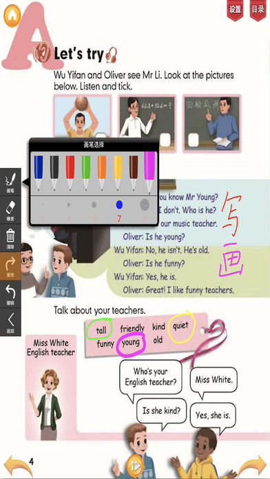 “好爸妈点读机”有声点读教材,一套能随身携带的智能电子课本,英语课本会自动双语朗读;语文课本带你准确朗读课文和掌握生字发音;数学会讲解例子及课后练习题的解题思路。使用iPhone或iPad就可随时随地学习。软件包括各地主流语、数、英教材90多本,是小朋友自学的好老师,把家长从繁琐的辅导解答中解放出来! ◆功能特色◆ 【1】英语双语读音准确清晰、高清图片不伤眼,不是那些粗糙软件能比的。 【2】单句、段落复读,语速灵活控制,让孩子听得更清楚,学的更准确。 【3】书写绘画很强大,边听边写做练习。书写笔迹自动保留,体验如纸质课本。 【4】仿真墨水笔迹光滑流畅,不是那些粗糙模仿的软件能比的。 【5】完全同步最新发行教材,绝无缺漏页现象。 【6】界面美观简洁,用心做好应用的每一个细节,操作简洁直观。 【7】后台播放人性化,灌灌耳音很方便,磁带碟片go away! 【8】同一本书相同Apple ID购买一次,可多设备共享,“已购用户恢复”免费解锁。 ◆特别注意◆ 有个别家长遇到软件购买不了,或者闪退等现象,通过沟通了解均属于设备设置不当等造成的。主要归纳如下: 【1】查看设置->通用->访问限制,不要启用App内购买项目的访问限制。 【2】点读无声音检查确保音量开关是否打开,或在设置中还原所有设置。 【3】每一本书或每套教材是独立的,软件内购恢复购买仅针对同一软件同一Apple ID。请对照当前使用的教材选择正确的课本下载或购买。 ◆联系作者◆ 如果您使用过程中有解决不了的问题可以联系作者: QQ: 2322747998 邮箱:ihaobaba@qq.com 微信公众号:iHaobaba 感谢您的大力支持。