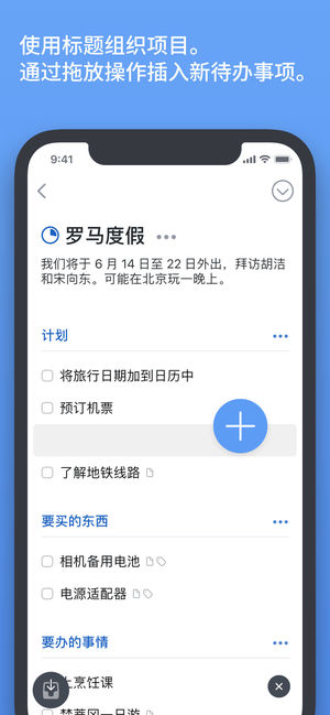 *** APPLE DESIGN AWARD WINNER 2017 *** 屡获殊荣的任务管理程序强势回归,并呈现出崭新面貌 – 采用永不过时的新式设计、令人愉悦的新型交互方式,并具有面面俱到且十分强大的全新功能。 以下为 Things 的工作方式 如果您是初次使用 Things,请参照以下的基本工作流程: 1.收集想法 快速记录您的想法:在任意应用内使用 Things 的操作扩展,或者与 Siri 交谈以向收件箱中添加待办事项。 2.分类 为您的每个目标创建一个项目。根据您的责任区域群组各项目,例如“家庭”、“工作”或“健康”。定期审查这些项目,从而顺利实现各目标。 3.计划…