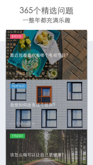 这不是另一个传统的日记APP,Loop Journal提供一種快速、簡單且有趣的方式,如果你寫日記的天數總不超過三天,那你一定要試試Loop Journal。 如果还在犹豫,可以先下载Loopify试试看,这是免费的这是免费的这是免费的(很重要所以说三次)。 媒體介紹 ** [最美应用] Loop Journal - 你的时光胶囊 ** [百度新闻出品] 创新概念日记应用Loop Journal:你的时光胶囊 ** [妞新聞] 每天回答一個問題記錄自己 新型日記APP Loop Journal提供了365個有趣問題,讓你天天都有反思。每天花不到三分鐘和自己對話,拾綴生活軼事。當一年過去,從一月一日再重新開始。年復一年地累積,獨特的介面設計讓你發現自己的改變與成長,且對自己有更新且更深入的了解。 这个简单又美丽的日记APP也将是任何开启人生新页的人的最佳礼物。 功能简介: 1365个精选问题让一整年都充满乐趣。 2,多元的布景主题可供选择,创造最适合你的日记体验。 3,提醒功能让你不会错过任一天的日记时间。 4,备份到Dropbox的,让回忆能永远妥善留存。 5,密码忠实守护着你和自己的私密对话,让你畅所欲言。 6,一指即能将你的想法分享到脸书,推特,微博等平台。
