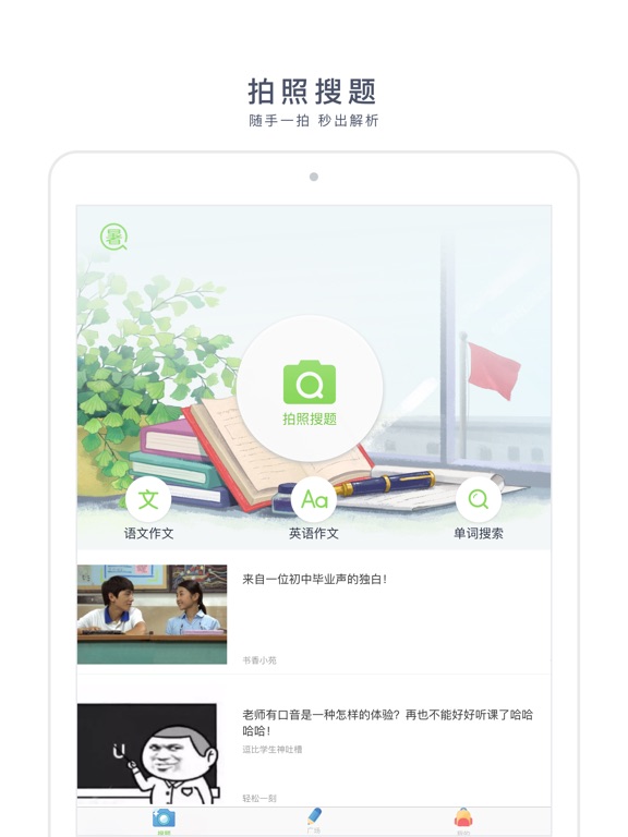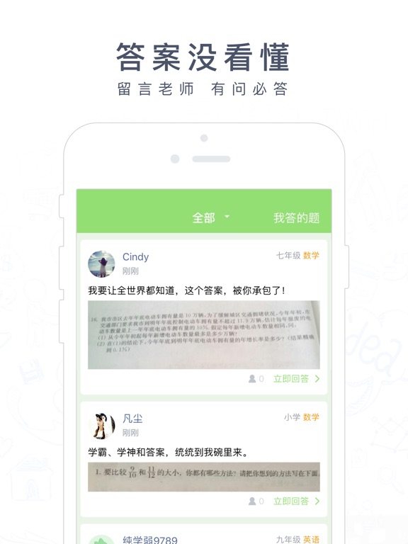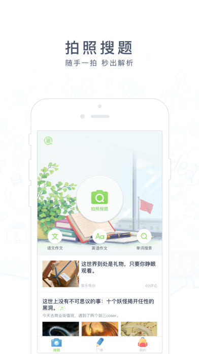 搜题速度突破0.3秒! 万名老师随时听你“调遣”! 解题快又准! 搞定作业,P.K.难题,帮你K.O.考试的神助攻! 阿凡题在手,好成(da)绩(an)我有! 【阿凡题必备场合】 1.作业不会挠头时 2.考前复习抓狂时 3.为男神女神讲题前 4.给熊孩子辅导作业时 【阿凡题超级技能】 1.拍照搜题快又准:遇到难题不要方!随手一拍,0.3秒出答案!无需注册,完全免费! 2.私人教师更懂你:答案看不懂?一键“呼叫”老师,有问必答!今日作业今日毕! 3.学习工具超好用:查单词,搜作文,好用到飞起~~ 4.覆盖题目超齐全:涵盖所有中小学科目,折磨人的数理化,记不住的英语,还有总要背背背的政史地,统统K.O.! 快拉上小伙伴们一起加入阿凡题!2亿中小学生的选择,就等你了哦~Let’s go! 注:阿凡题需要获取您的位置用于精准推送,若不允许,将无法收到相应推送服务