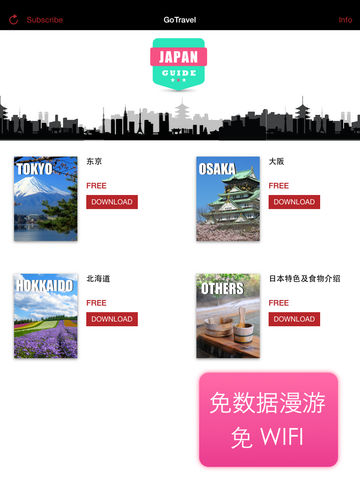 日本自由行地图,为您提供日本城市包括东京,大阪,京都,神户,奈良等等所有重要日本城市的旅游资讯,app涵盖了所有你可能需要的离线地图及旅游信息,为你在旅途中节省流量, 它****不需要网络连接, 依然可以查看全部地图及旅游景点资讯***** *日本自由行地图的图标将不在桌面显示,而出现在Newsstand报刊杂志栏中,敬请注意!* 现即下载我们的App应用程序,即可享受**免费订阅服务**,一次性消费即可享受所有日本城市的旅游资讯及后续更新。 本应用提供: 1. 日本城市地铁地图 (包括所有地铁线及所有zone区域) 2. 日本城市观光巴士地图及连接各个主要景点一览 3. 日本城市火车铁路地图 4. 日本城市电车地图 5. 日本城市主要景点详细介绍, 网站链接,查询电话,详细如何到达?步行地图 6. 日本城市市郊地区一日游游览介绍 7. 交通优惠套票介绍 8. 日本城市主要机场连接交通介绍 9. 其他有用旅游资料,包括紧急电话,领事馆联系,购物退税方式等 10. 旅行准备清单 11. 推荐行程,旅游心得分享 应用特点: 1. 100% 离线 - 无需任何网络连接可以读取所有内容 (打开外部网页和应用更新除外) 2. 所有的地图均有多达5个缩放级别,而且完全离线,在旅途当中不会产生任何漫游费用! 3. 景点图文介绍,丰富的旅游信息,详细指示如何到达。 4. 同时适配iPhone跟iPad, iOS6 以上的苹果设备。 5. 可以随意选择性下载需要城市的资讯,更好管理设备内存。