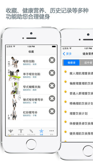 一款针对健身爱好者的健身应用程序,动画教程一目了然,根据不同训练部位分类,针对塑形、健身和力量训练提供了不同的锻炼计划,界面简单易用,每个人都能在软件中找到适合自己的运动和计划,这就是为您专属定制的私人健身教练! 专属定制私人健身教练为您提供: -包括背部、胸肌、手臂、肩部、腿部、腹部等部位的140多个训练项目,并可按器材进行筛选,快速找到最适合的锻炼项目 -健美、健身、健力三个类别的28个健身计划,帮助您达成不同的健身目标 -自定义健身计划,您可以根据自身情况轻松定制最适合自己的健身计划,选择训练动作、选择训练强度等等随心所欲 -训练记录,保存属于您的健身数据,随时查看 -健身营养 均衡…