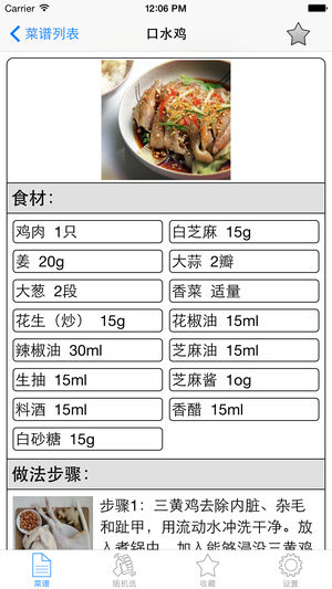 《凉菜菜谱大全》让您用最短的时间、最快的方式学会烹饪各种营养美味的凉菜! 《凉菜菜谱大全》图文并茂的列出了烹饪所需的食材、制作步骤、营养搭配以及口味等。 《凉菜菜谱大全》支持全文检索,输入食材、菜名等信息均可检索。 《凉菜菜谱大全》完全离线,无需联网。 《凉菜菜谱大全》支持随机选择,摇一摇手机即可随机选。 《凉菜菜谱大全》具有收藏功能,一键收藏。 《凉菜菜谱大全》是居家必备的菜谱。