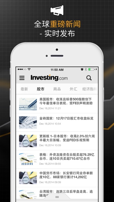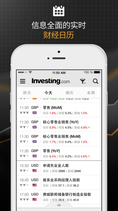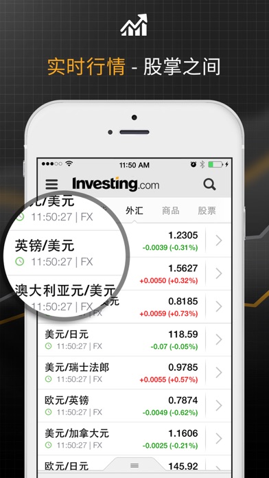 全球数百万人正在使用Investing.com App的数百万人群,马上加入随时了解全球财经信息! Investing.com广泛提供全球和当地金融品种的多种财经工具,是交易者和投资者的一站式商店。 实时数据 全球70多家交易所的十万多种金融品种的实时行情。 实时追踪全球主要指数、股票、债券、商品、外汇、利率、期货和期权。 财经日历 根据您的个人兴趣定制的全球财经事件实时更新。 我们的实时财经日历被全球顶级交易者和投资者用于跟踪财经市场重要事件,轻松了解事件对于市场的影响。 定制化投资组合 将最喜爱的金融品种及其持仓添加至您的投资组合。 建立定制关注列表,随时跟踪股票行情、货币、商品、指数、ETF和债券走势 - 都与您的Investing.com账户同步。 提醒 我们的提醒系统可让您收到任何品种、财经事件或新分析文章的定制提醒。 新闻和分析 全球金融市场以及科技、政治和商业方面的即时新闻、视频、更新和分析。 最先获知股票、外汇、商品和全球经济新闻。 金融工具 快速访问我们所有的世界领先工具,包括:财经日历、盈利日历、技术汇总、市场行情、高级图表等。 已经是会员? 请登录以在您的所有设备之间同步投资组合和定制提醒,之后网站将回到您刚才的访问页面。 社交 加入我们日益壮大的交易者和投资者社区并分享文章至Facebook、WhatsApp、Twitter和LinkedIn。 我们的数据: 商品价格 关注即时商品价格,包括:黄金、白银、铜、铂金、原油、布伦特原油和天然气。 外汇汇率 跟踪主要货币汇率:欧元/美元、英镑/美元、欧元/瑞朗、澳元/美元、美元/日元、美元/加元、美元/瑞朗、比特币/美元、美元/卢布、美元/港元等 主要股票 跟踪股市领头羊:苹果(AAPL)、阿法贝(GOOGL)、美国银行(BAC)、特斯拉(TSLA)、通用电气(GE)、思科系统(CSCO)、美国运通(AXP)、亚马逊(AMZN)、耐克(NKE)、微软(MSFT)、奈飞(NFLX)等。 全球指数 关注所有主要股市指数,包括: ■ 美国:道琼斯指数、标普500、纽交所指数、纳指、小盘2000指数 ■ 美洲:阿根廷Merval、巴西Bovespa、罗素2000、墨西哥IPC、智利IPSA ■ 欧洲:法国CAC40、意大利富时、西班牙IBEX 35、奥地利ATX、比利时BEL 20、德国DAX、保加利亚BSE Sofia、捷克PX ■ 亚太:印度CNX Nifty、上证综指、恒生指数、韩国KOSPI ■ 非洲:BSE国内公司、肯尼亚NSE 20、毛里求斯Semdex、摩洛哥全指、南非40 ■ 中东:巴林全股指、埃及EGX 30、阿曼股指、科威特主要指数、以色列TA 25 债券行情 债券实时数据,包括美国国债收益率、欧元债券、英国金边债券、欧元意大利国债等。 加密货币: 比特币(BTC)、以太坊(ETH)、瑞波币(XRP)、莱特币(LTC)和达世币等替代币市场新闻、价格、市值和成交量变化。
